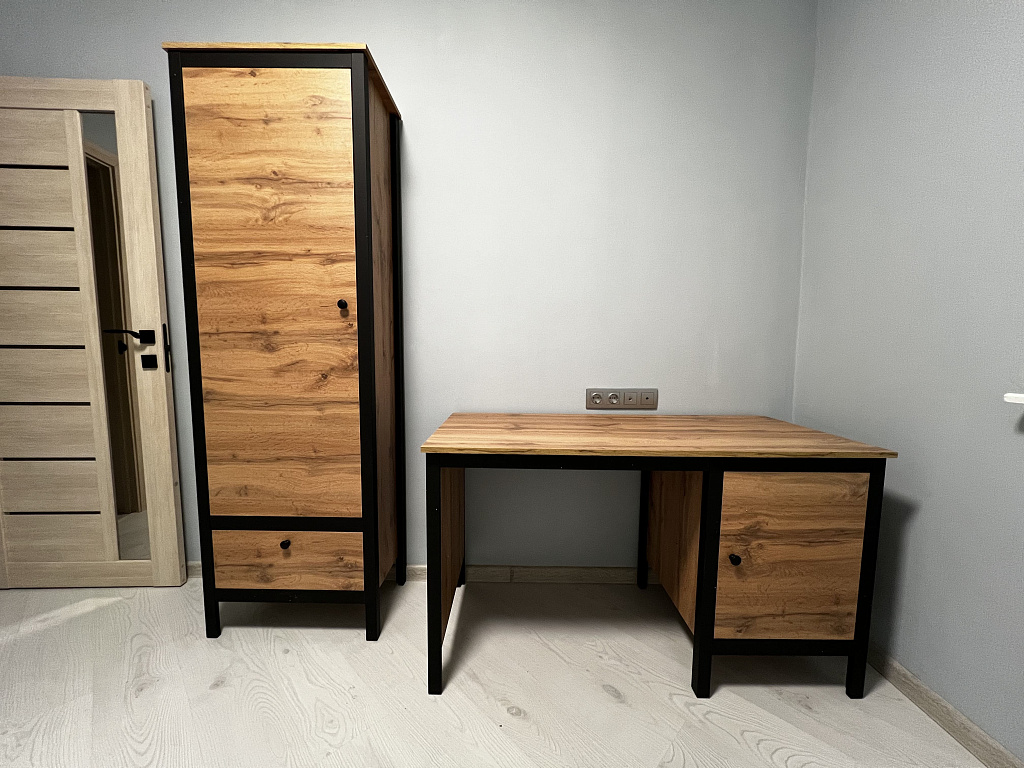 Контрастное сочетание цветов (дуб вотан/черный), легкая и функциональная конструкция элементов, металлические комплектующие - отличительные особенности коллекции LOFT.