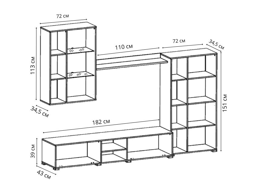 (Ширина: 182 см /Высота: 39см /Глубина: 43 см)
