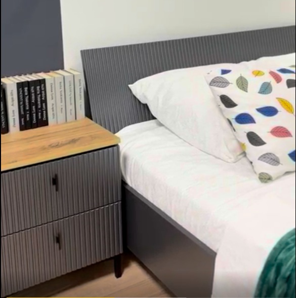Коллекция Сан‑Джиминьяно создаёт элегантный интерьер, где каждое мгновение становится ярким и запоминающимся. Тёмные гладкие и рифлёные фасады, высокие ножки, чёрные матовые ручки и акцентная столешница формируют выразительный современный стиль.
